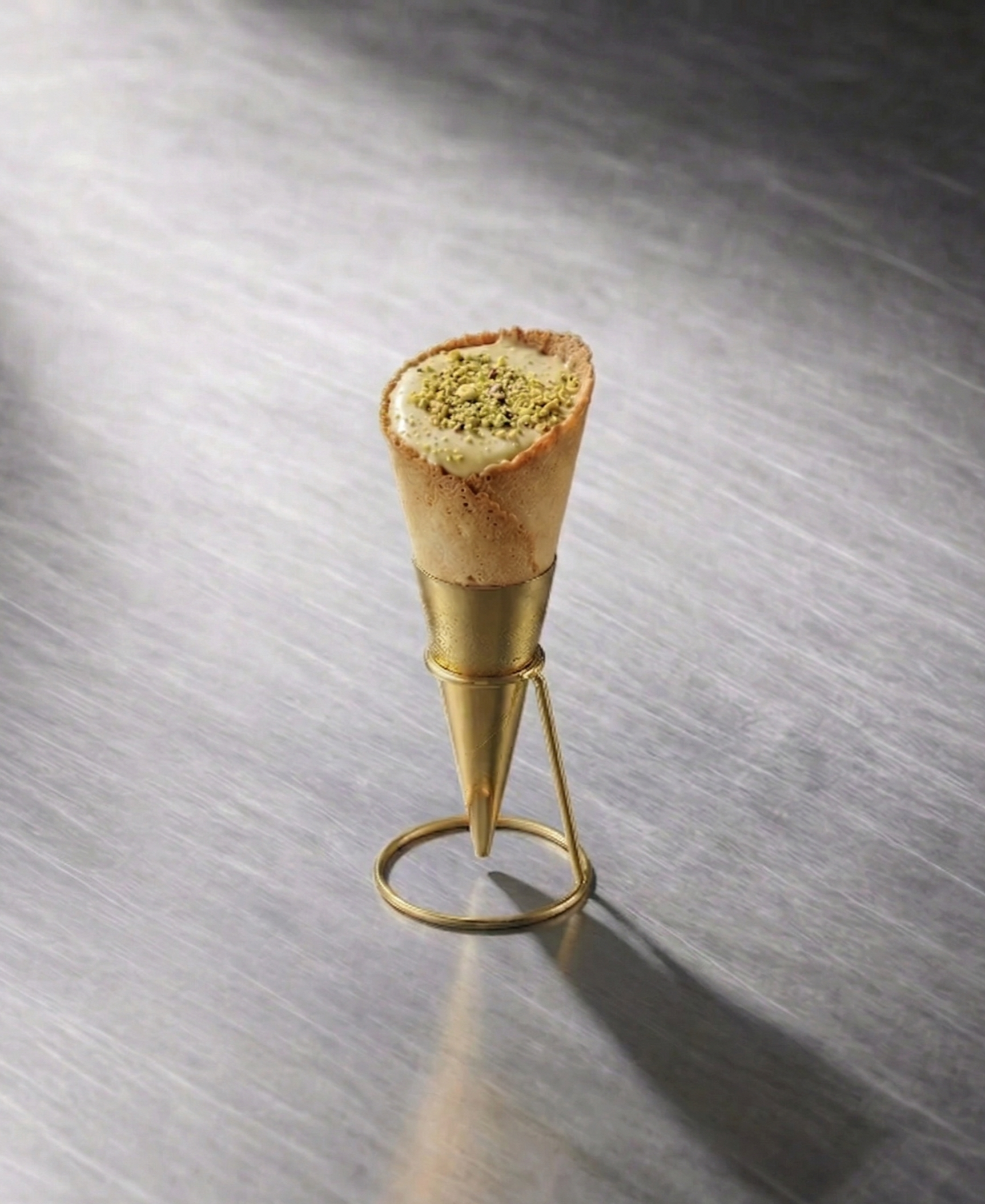 Cono crujiente de textura ligera.